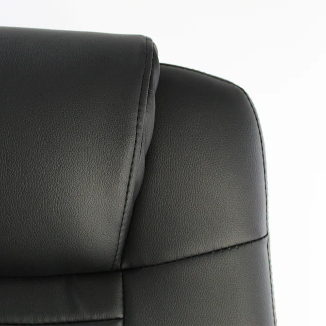 El respaldo reclinable, fabricado con estructura de madera tapizada en PU, incluye acojinamiento adicional en el área de cabeza y cuello, asegurando soporte y comodidad ideales para una postura saludable. 🪑